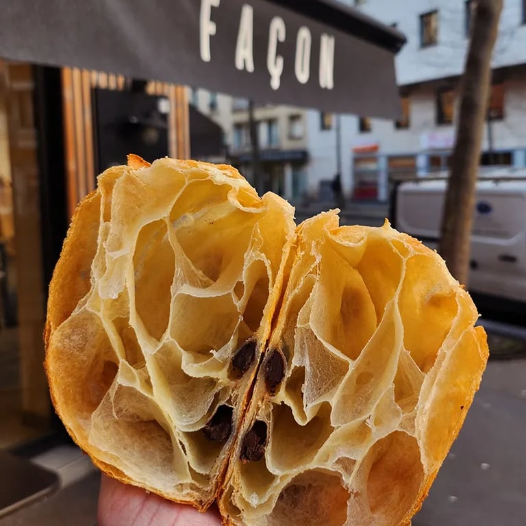 Des feuilletages dorés, du beurre, du plaisir, le savoir-faire et la signature Façon.